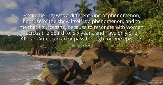 Underwood, Blair. (2026, February 19). Sex in the City was a different kind of phenomenon, because of the show itself is a phenomenon, and to me that's successful, because to resonate with women across the board for six years, and have only one African-American actor pass through for one episode. FixQuotes. https://fixquotes.com/quotes/sex-in-the-city-was-a-different-kind-of-45060/