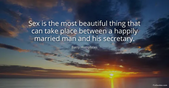 Humphries, Barry. (2026, January 15). Sex is the most beautiful thing that can take place between a happily married man and his secretary. FixQuotes. https://fixquotes.com/quotes/sex-is-the-most-beautiful-thing-that-can-take-121878/