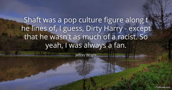 Wright, Jeffrey. "Shaft was a pop culture figure along t he lines of, I guess, Dirty Harry - except that he wasn't as much of a racist. So yeah, I was always a fan." FixQuotes. January 16, 2026. https://fixquotes.com/quotes/shaft-was-a-pop-culture-figure-along-t-he-lines-125092/.