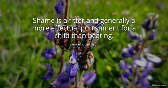 Richardson, Samuel. (2026, January 18). Shame is a fitter and generally a more effectual punishment for a child than beating. FixQuotes. https://fixquotes.com/quotes/shame-is-a-fitter-and-generally-a-more-effectual-11461/