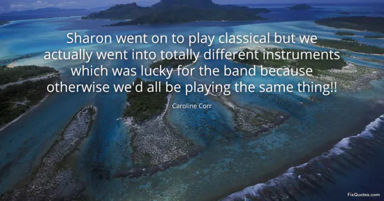Corr, Caroline. "Sharon went on to play classical but we actually went into totally different instruments which was lucky for the band because otherwise we'd all be playing the same thing!!" FixQuotes. January 15, 2026. https://fixquotes.com/quotes/sharon-went-on-to-play-classical-but-we-actually-141581/.