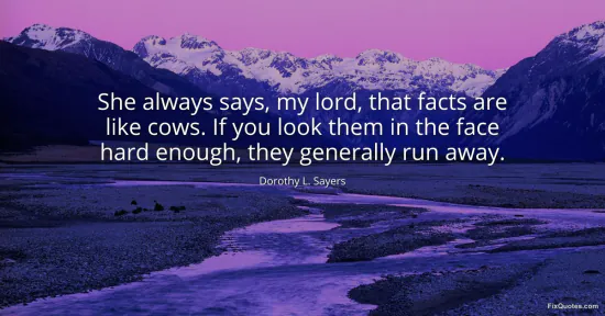 Sayers, Dorothy L. "She always says, my lord, that facts are like cows. If you look them in the face hard enough, they generally run away." FixQuotes. February 16, 2026. https://fixquotes.com/quotes/she-always-says-my-lord-that-facts-are-like-cows-25889/.