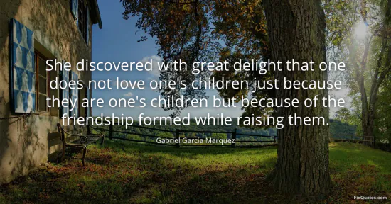 "She discovered with great delight that one does not love one's children just because they are one's children but because of the friendship formed while raising them"