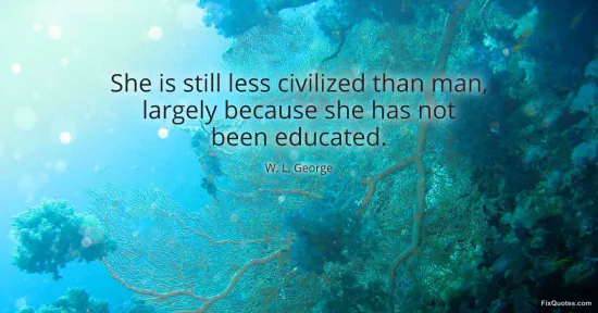 George, W. L. "She is still less civilized than man, largely because she has not been educated." FixQuotes. January 16, 2026. https://fixquotes.com/quotes/she-is-still-less-civilized-than-man-largely-107876/.