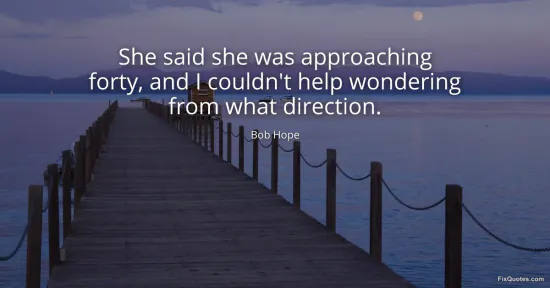 Hope, Bob. "She said she was approaching forty, and I couldn't help wondering from what direction." FixQuotes. January 17, 2026. https://fixquotes.com/quotes/she-said-she-was-approaching-forty-and-i-couldnt-30266/.