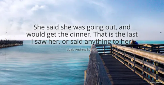 Borden, Lizzie Andrew. "She said she was going out, and would get the dinner. That is the last I saw her, or said anything to her." FixQuotes. January 16, 2026. https://fixquotes.com/quotes/she-said-she-was-going-out-and-would-get-the-114851/.