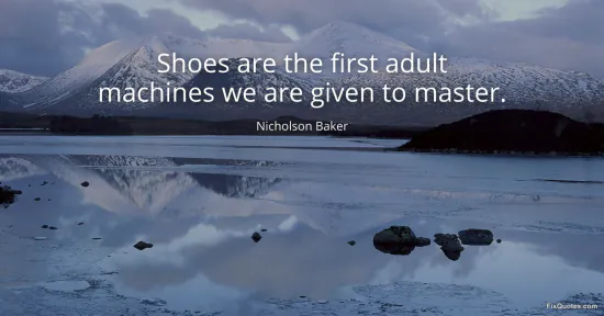 Baker, Nicholson. "Shoes are the first adult machines we are given to master." FixQuotes. January 17, 2026. https://fixquotes.com/quotes/shoes-are-the-first-adult-machines-we-are-given-51843/.