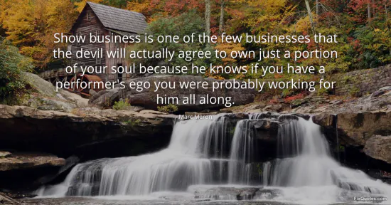 Maron, Marc. "Show business is one of the few businesses that the devil will actually agree to own just a portion of your soul because he knows if you have a performer's ego you were probably working for him all along." FixQuotes. January 16, 2026. https://fixquotes.com/quotes/show-business-is-one-of-the-few-businesses-that-104494/.