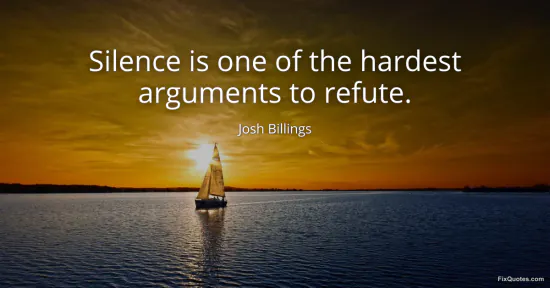 Billings, Josh. (2026, February 13). Silence is one of the hardest arguments to refute. FixQuotes. https://fixquotes.com/quotes/silence-is-one-of-the-hardest-arguments-to-refute-149845/