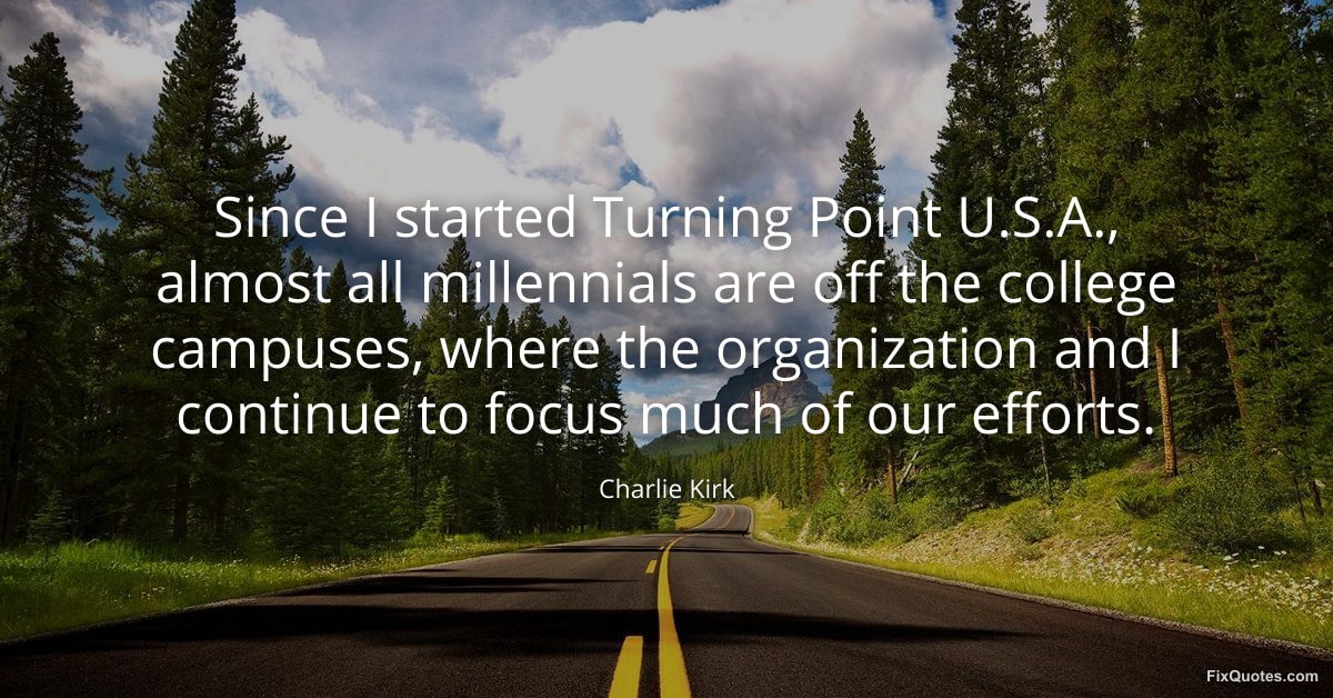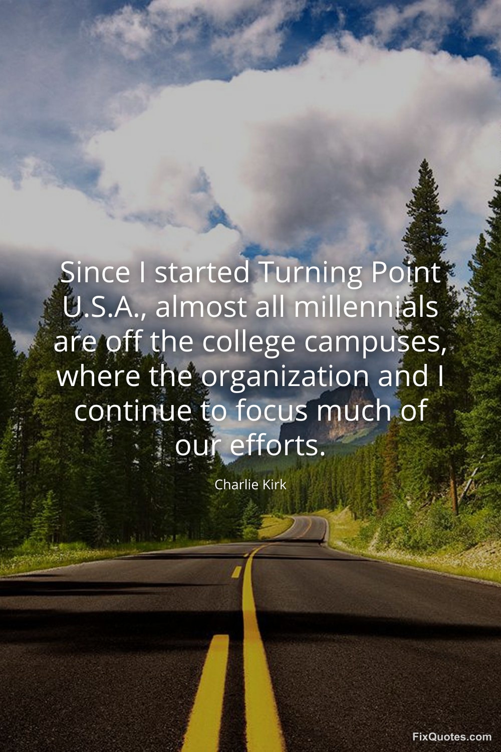"Since I started Turning Point U.S.A., almost all millennials are off the college campuses, where the organization and I continue to focus much of our efforts"
