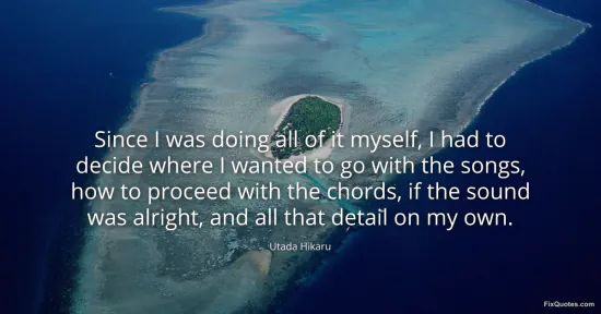 Hikaru, Utada. "Since I was doing all of it myself, I had to decide where I wanted to go with the songs, how to proceed with the chords, if the sound was alright, and all that detail on my own." FixQuotes. January 16, 2026. https://fixquotes.com/quotes/since-i-was-doing-all-of-it-myself-i-had-to-104327/.