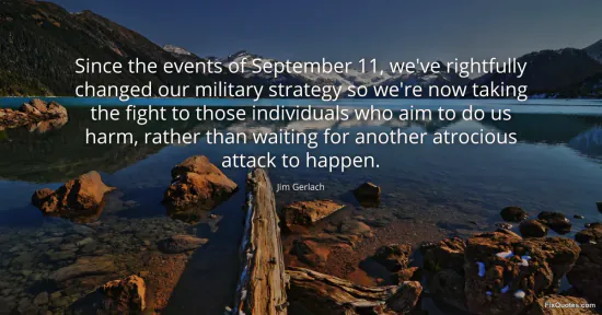 Gerlach, Jim. (2026, January 15). Since the events of September 11, we've rightfully changed our military strategy so we're now taking the fight to those individuals who aim to do us harm, rather than waiting for another atrocious attack to happen. FixQuotes. https://fixquotes.com/quotes/since-the-events-of-september-11-weve-rightfully-91523/