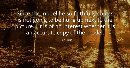 Freud, Lucian. (2026, January 17). Since the model he so faithfully copies is not going to be hung up next to the picture... it is of no interest whether it is an accurate copy of the model. FixQuotes. https://fixquotes.com/quotes/since-the-model-he-so-faithfully-copies-is-not-70886/