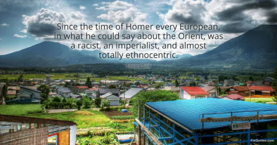 Said, Edward. "Since the time of Homer every European, in what he could say about the Orient, was a racist, an imperialist, and almost totally ethnocentric." FixQuotes. January 16, 2026. https://fixquotes.com/quotes/since-the-time-of-homer-every-european-in-what-he-115131/.