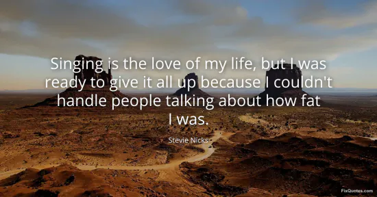 Nicks, Stevie. "Singing is the love of my life, but I was ready to give it all up because I couldn't handle people talking about how fat I was." FixQuotes. January 16, 2026. https://fixquotes.com/quotes/singing-is-the-love-of-my-life-but-i-was-ready-to-116873/.