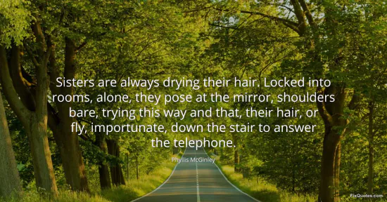 McGinley, Phyllis. (2026, February 18). Sisters are always drying their hair. Locked into rooms, alone, they pose at the mirror, shoulders bare, trying this way and that, their hair, or fly, importunate, down the stair to answer the telephone. FixQuotes. https://fixquotes.com/quotes/sisters-are-always-drying-their-hair-locked-into-71807/