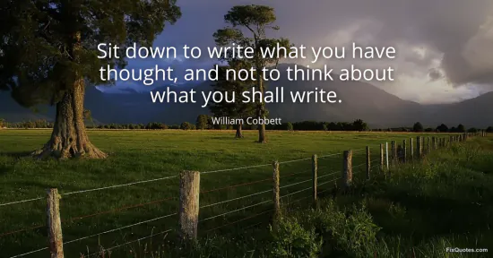 Cobbett, William. "Sit down to write what you have thought, and not to think about what you shall write." FixQuotes. January 18, 2026. https://fixquotes.com/quotes/sit-down-to-write-what-you-have-thought-and-not-17013/.