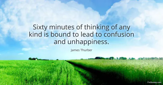 Thurber, James. (2026, January 15). Sixty minutes of thinking of any kind is bound to lead to confusion and unhappiness. FixQuotes. https://fixquotes.com/quotes/sixty-minutes-of-thinking-of-any-kind-is-bound-to-56342/