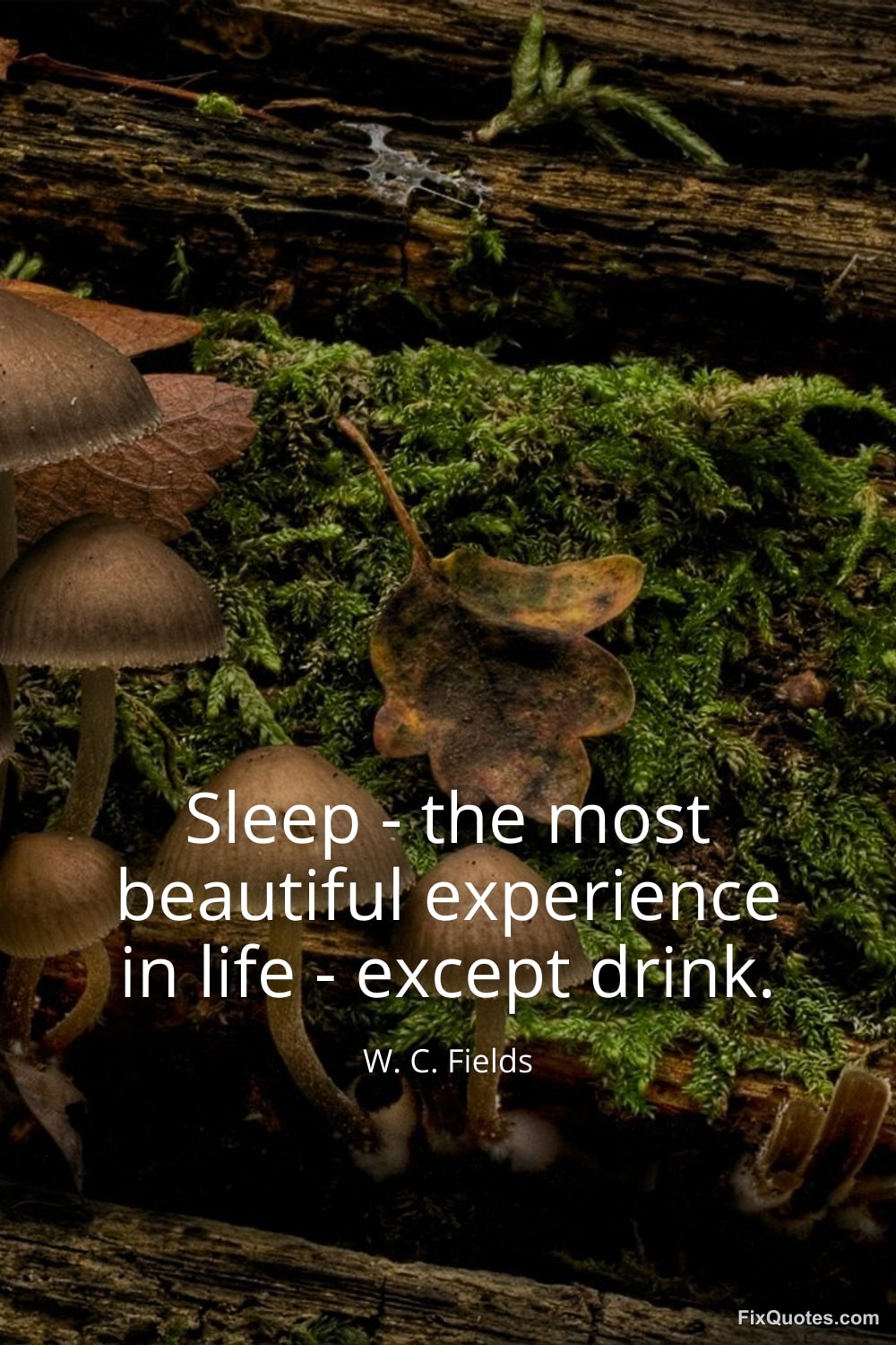 Fields, W. C. "Sleep - the most beautiful experience in life - except drink." FixQuotes. January 18, 2026. https://fixquotes.com/quotes/sleep-the-most-beautiful-experience-in-life-10719/.