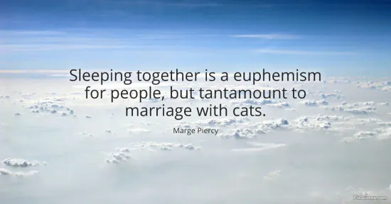 "Sleeping together is a euphemism for people, but tantamount to marriage with cats"