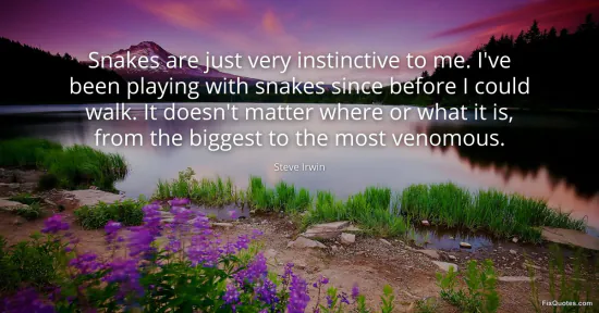 Irwin, Steve. "Snakes are just very instinctive to me. I've been playing with snakes since before I could walk. It doesn't matter where or what it is, from the biggest to the most venomous." FixQuotes. January 17, 2026. https://fixquotes.com/quotes/snakes-are-just-very-instinctive-to-me-ive-been-73981/.