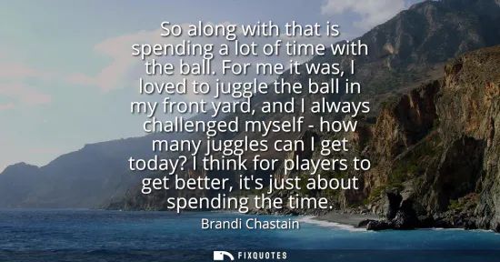 Contextually, coming from Chastain, the line lands as a corrective to the highlight-reel myth that surrounds women’s soccer pioneers. She’s a legend of a watershed era, but she’s pointing backward to a solitary ritual, not a stadium moment. The intent is almost parental: if you want the level, fall in love with the touch. Talent becomes a relationship, maintained daily, not a lottery ticket you either have or don’t.