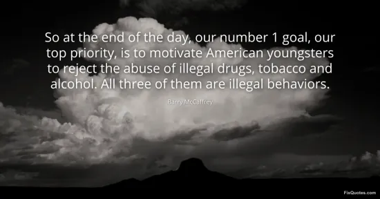 McCaffrey, Barry. "So at the end of the day, our number 1 goal, our top priority, is to motivate American youngsters to reject the abuse of illegal drugs, tobacco and alcohol. All three of them are illegal behaviors." FixQuotes. January 16, 2026. https://fixquotes.com/quotes/so-at-the-end-of-the-day-our-number-1-goal-our-118179/.