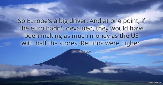 "So Europe's a big driver. And at one point, if the euro hadn't devalued, they would have been making as much money as the US with half the stores. Returns were higher." FixQuotes, 17 Jan. 2026, https://fixquotes.com/quotes/so-europes-a-big-driver-and-at-one-point-if-the-75015/. Accessed 21 Feb. 2026.