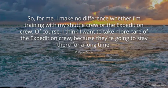Perrin, Philippe. (2026, January 17). So, for me, I make no difference whether I'm training with my shuttle crew or the Expedition crew. Of course, I think I want to take more care of the Expedition crew, because they're going to stay there for a long time. FixQuotes. https://fixquotes.com/quotes/so-for-me-i-make-no-difference-whether-im-64202/