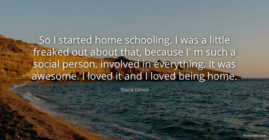 Orrico, Stacie. (2026, January 17). So I started home schooling. I was a little freaked out about that, because I' m such a social person, involved in everything. It was awesome. I loved it and I loved being home. FixQuotes. https://fixquotes.com/quotes/so-i-started-home-schooling-i-was-a-little-77366/