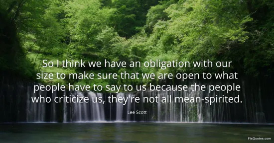 Scott, Lee. (2026, January 16). So I think we have an obligation with our size to make sure that we are open to what people have to say to us because the people who criticize us, they're not all mean-spirited. FixQuotes. https://fixquotes.com/quotes/so-i-think-we-have-an-obligation-with-our-size-to-87321/