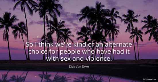 Dyke, Dick Van. "So I think we're kind of an alternate choice for people who have had it with sex and violence." FixQuotes. January 17, 2026. https://fixquotes.com/quotes/so-i-think-were-kind-of-an-alternate-choice-for-58500/.