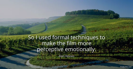 Resnais, Alain. (2026, January 15). So I used formal techniques to make the film more perceptive emotionally. FixQuotes. https://fixquotes.com/quotes/so-i-used-formal-techniques-to-make-the-film-more-43887/