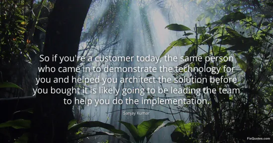 Kumar, Sanjay. (2026, January 16). So if you're a customer today, the same person who came in to demonstrate the technology for you and helped you architect the solution before you bought it is likely going to be leading the team to help you do the implementation. FixQuotes. https://fixquotes.com/quotes/so-if-youre-a-customer-today-the-same-person-who-110195/