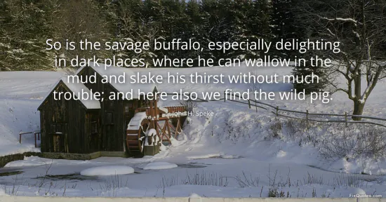 Speke, John H. "So is the savage buffalo, especially delighting in dark places, where he can wallow in the mud and slake his thirst without much trouble; and here also we find the wild pig." FixQuotes. January 16, 2026. https://fixquotes.com/quotes/so-is-the-savage-buffalo-especially-delighting-in-115652/.