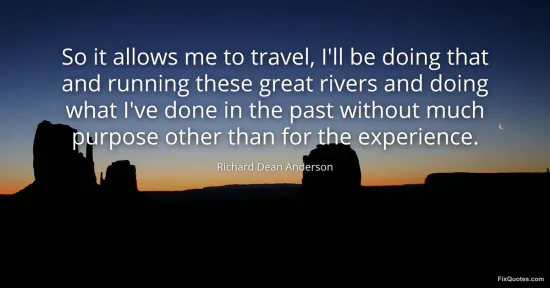 Anderson, Richard Dean. (2026, January 16). So it allows me to travel, I'll be doing that and running these great rivers and doing what I've done in the past without much purpose other than for the experience. FixQuotes. https://fixquotes.com/quotes/so-it-allows-me-to-travel-ill-be-doing-that-and-98172/
