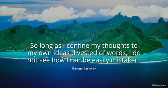 Berkeley, George. "So long as I confine my thoughts to my own ideas divested of words, I do not see how I can be easily mistaken." FixQuotes. January 16, 2026. https://fixquotes.com/quotes/so-long-as-i-confine-my-thoughts-to-my-own-ideas-84240/.
