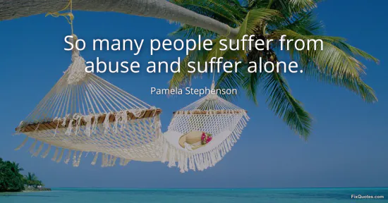 Stephenson, Pamela. (2026, February 16). So many people suffer from abuse and suffer alone. FixQuotes. https://fixquotes.com/quotes/so-many-people-suffer-from-abuse-and-suffer-alone-105275/