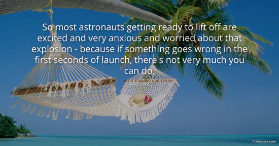 "So most astronauts getting ready to lift off are excited and very anxious and worried about that explosion - because if something goes wrong in the first seconds of launch, there's not very much you can do." FixQuotes, 18 Jan. 2026, https://fixquotes.com/quotes/so-most-astronauts-getting-ready-to-lift-off-are-21656/. Accessed 12 Feb. 2026.