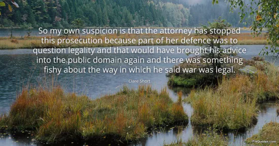 Short, Clare. "So my own suspicion is that the attorney has stopped this prosecution because part of her defence was to question legality and that would have brought his advice into the public domain again and there was something fishy about the way in which he said war was legal." FixQuotes. January 15, 2026. https://fixquotes.com/quotes/so-my-own-suspicion-is-that-the-attorney-has-150333/.