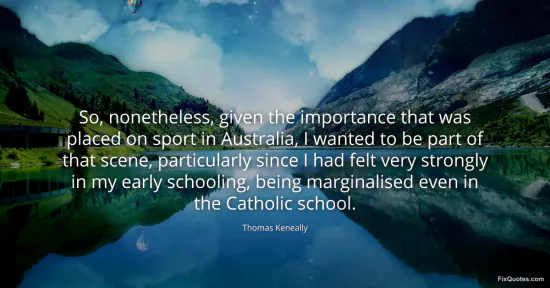 Keneally, Thomas. "So, nonetheless, given the importance that was placed on sport in Australia, I wanted to be part of that scene, particularly since I had felt very strongly in my early schooling, being marginalised even in the Catholic school." FixQuotes. February 18, 2026. https://fixquotes.com/quotes/so-nonetheless-given-the-importance-that-was-83768/.