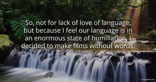Reggio, Godfrey. (2026, January 15). So, not for lack of love of language, but because I feel our language is in an enormous state of humiliation, I decided to make films without words. FixQuotes. https://fixquotes.com/quotes/so-not-for-lack-of-love-of-language-but-because-i-143980/