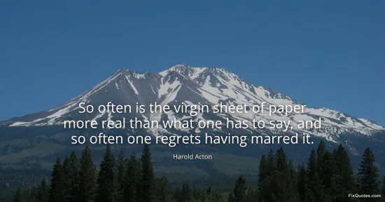 Acton, Harold. "So often is the virgin sheet of paper more real than what one has to say, and so often one regrets having marred it." FixQuotes. January 16, 2026. https://fixquotes.com/quotes/so-often-is-the-virgin-sheet-of-paper-more-real-133814/.
