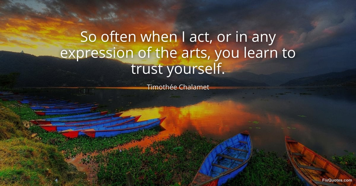 Chalamet, Timothée. (2026, March 9). So often when I act, or in any expression of the arts, you learn to trust yourself. FixQuotes. https://fixquotes.com/quotes/so-often-when-i-act-or-in-any-expression-of-the-185788/