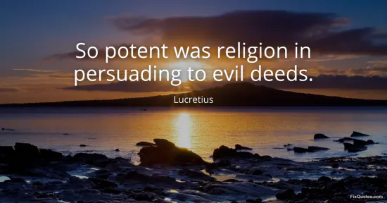 Lucretius. "So potent was religion in persuading to evil deeds." FixQuotes. January 18, 2026. https://fixquotes.com/quotes/so-potent-was-religion-in-persuading-to-evil-deeds-565/.