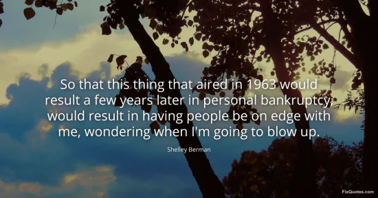 Berman, Shelley. (2026, January 17). So that this thing that aired in 1963 would result a few years later in personal bankruptcy, would result in having people be on edge with me, wondering when I'm going to blow up. FixQuotes. https://fixquotes.com/quotes/so-that-this-thing-that-aired-in-1963-would-75760/