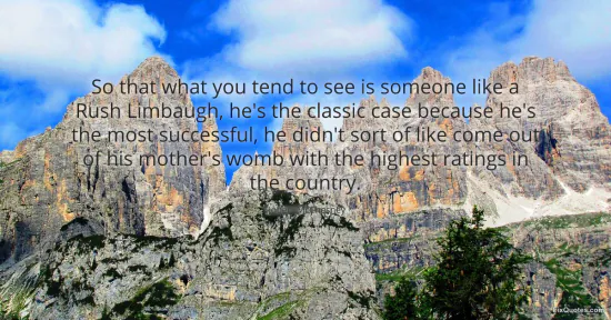 "So that what you tend to see is someone like a Rush Limbaugh, he's the classic case because he's the most successful, he didn't sort of like come out of his mother's womb with the highest ratings in the country." FixQuotes, 17 Jan. 2026, https://fixquotes.com/quotes/so-that-what-you-tend-to-see-is-someone-like-a-73510/. Accessed 22 Feb. 2026.