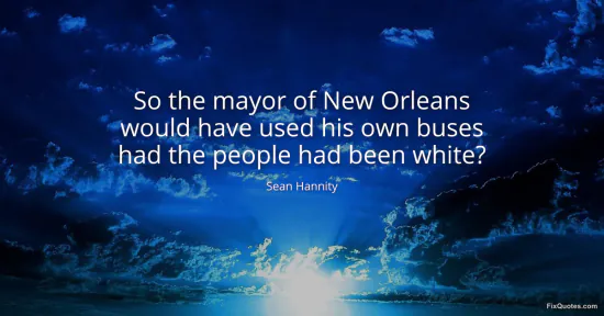 Hannity, Sean. (2026, January 16). So the mayor of New Orleans would have used his own buses had the people had been white? FixQuotes. https://fixquotes.com/quotes/so-the-mayor-of-new-orleans-would-have-used-his-97390/