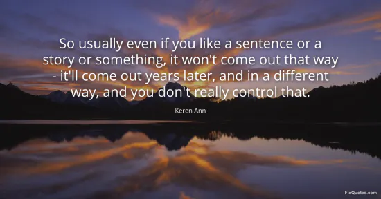 Ann, Keren. "So usually even if you like a sentence or a story or something, it won't come out that way - it'll come out years later, and in a different way, and you don't really control that." FixQuotes. January 16, 2026. https://fixquotes.com/quotes/so-usually-even-if-you-like-a-sentence-or-a-story-107567/.