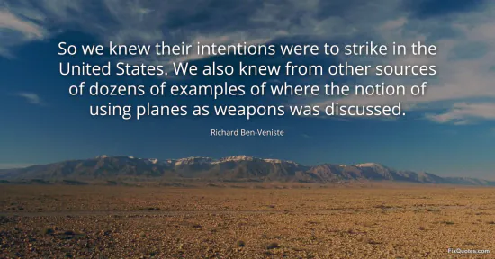 Ben-Veniste, Richard. (2026, January 15). So we knew their intentions were to strike in the United States. We also knew from other sources of dozens of examples of where the notion of using planes as weapons was discussed. FixQuotes. https://fixquotes.com/quotes/so-we-knew-their-intentions-were-to-strike-in-the-152014/